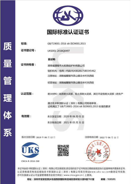 质量管理体系认证证书